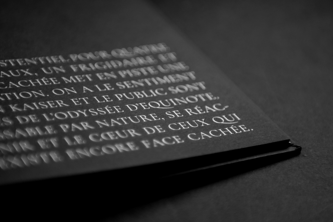 Impression en encre argent sur papier noir.